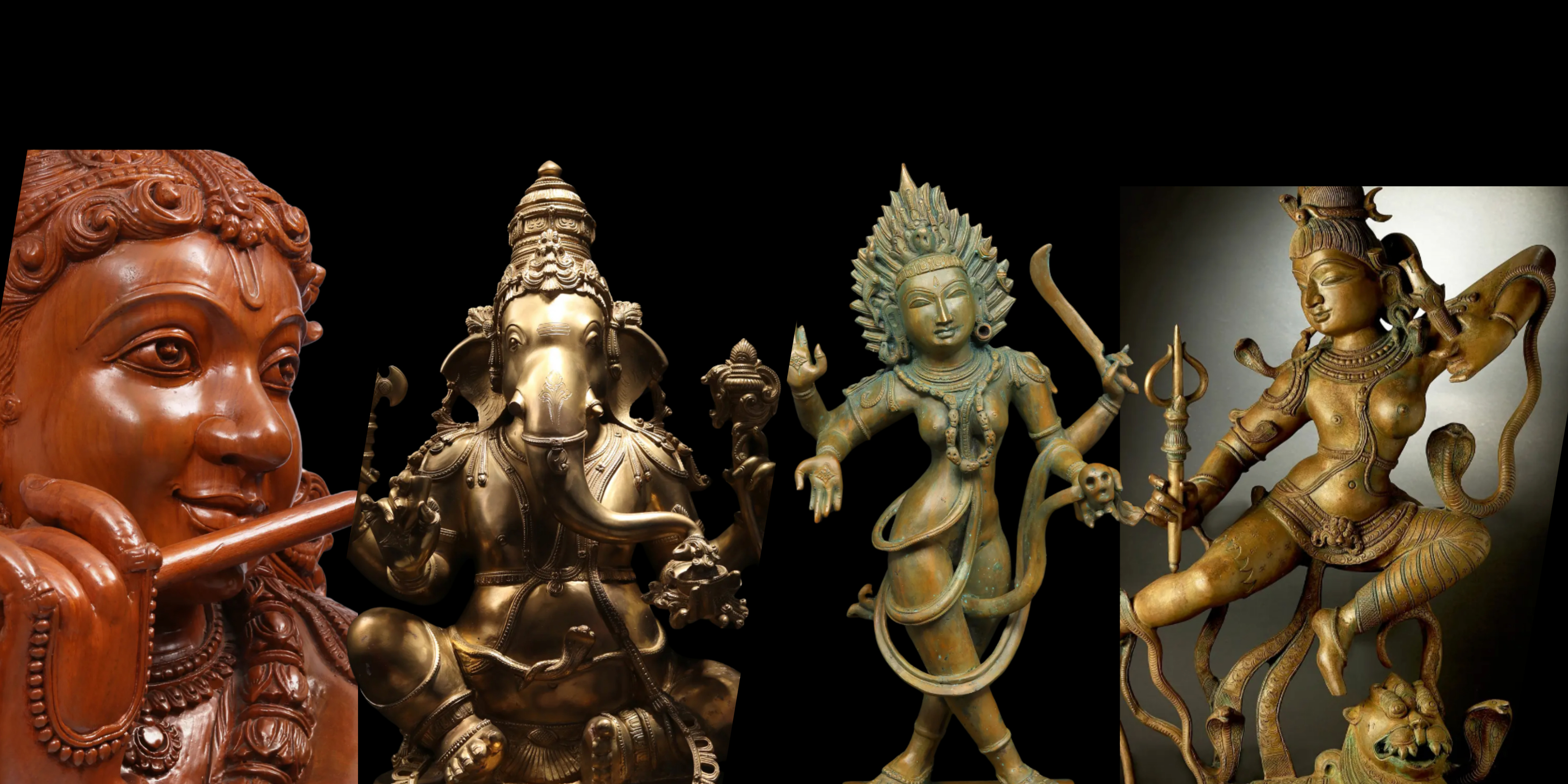 126" Four armed Lord Ganesha Seated with Kirtimukha Throne | Wood Carved Statue | Shipped by Sea